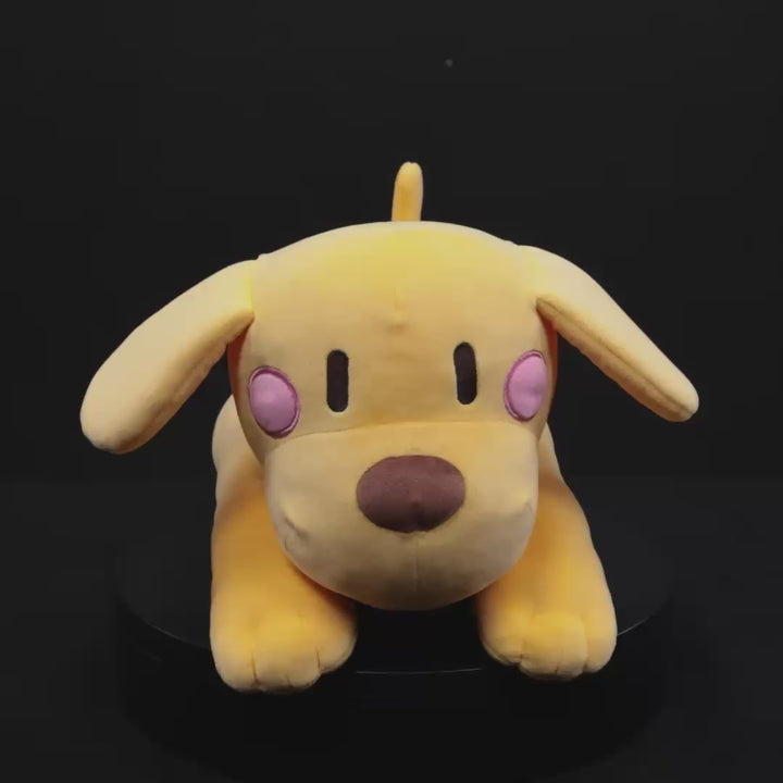 This official Fields of Mistria plush was designed by Saber Murphy. It's about 27 cm tall when lounging on its included plush dog bed.