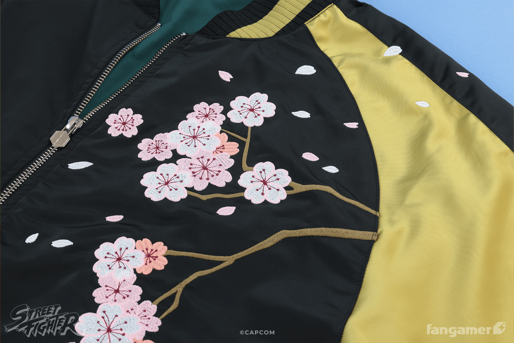 This official Street Fighter 6 sukajan was designed by Laura Verdin. It's a fully custom, 100% polyester satin jacket.