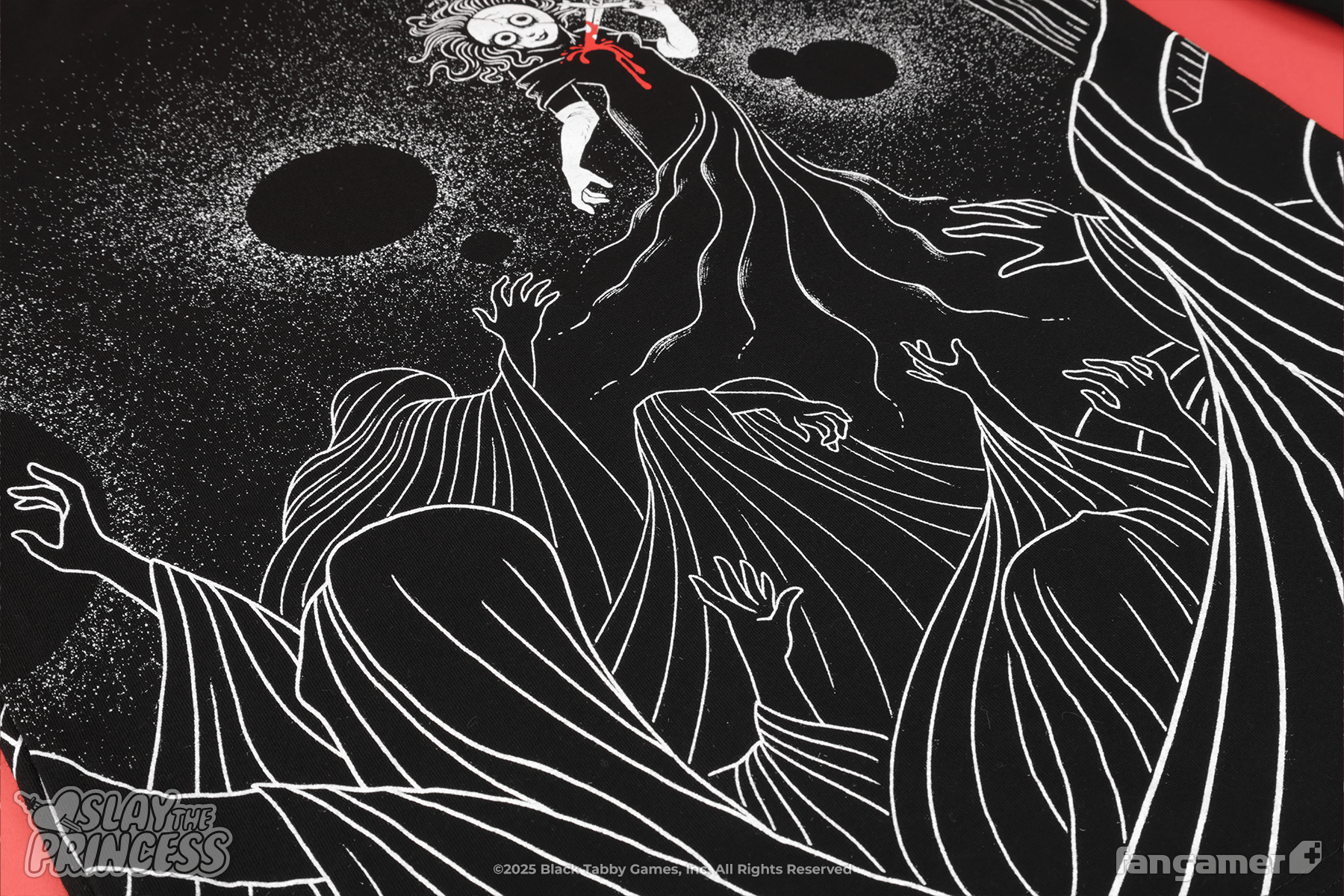 This official Slay the Princess long-sleeved shirt was designed by Laura Verdin. It's 100% cotton.