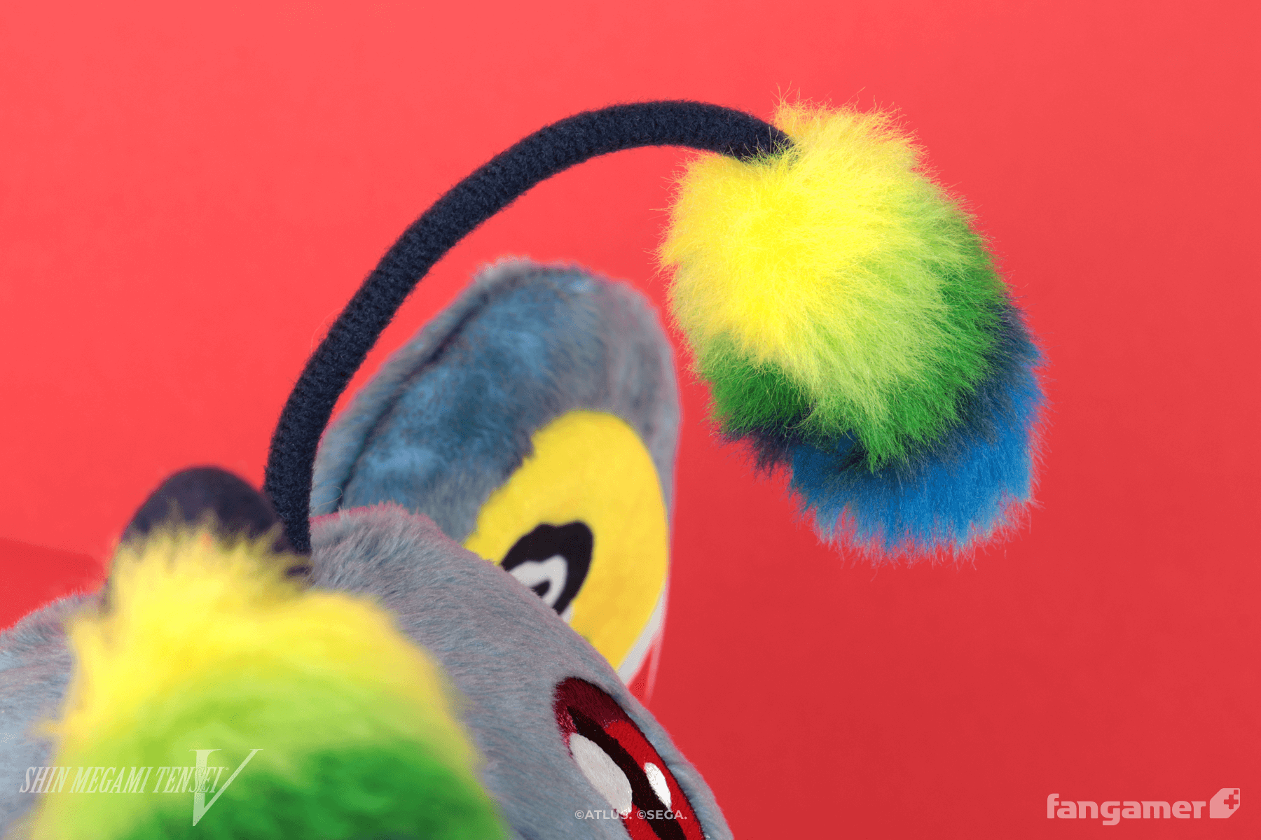 This official Shin Megami Tensei V plush was designed by Jorge M. Velez. It's about 28 centimeters long, measured to the tips of its posable antennae
