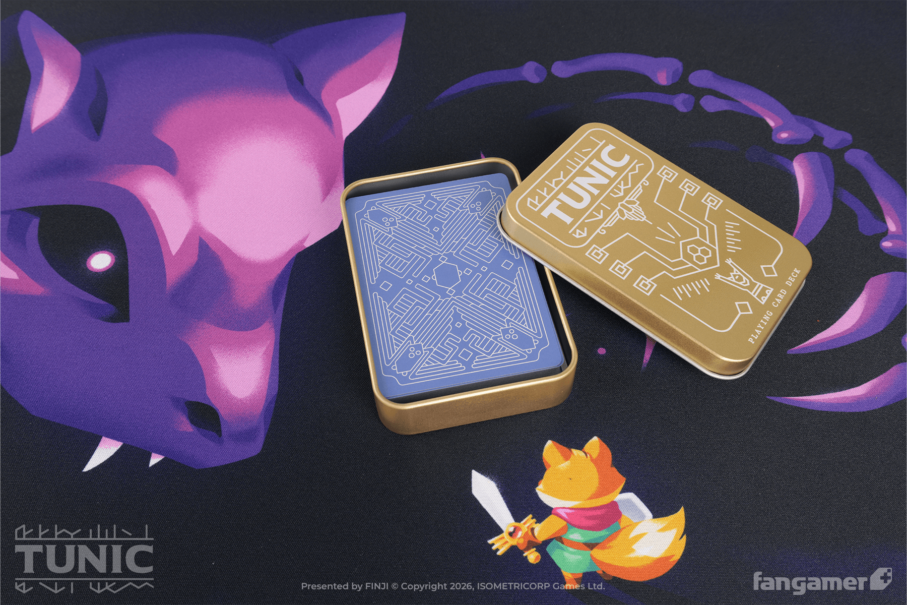 This deck of TUNIC playing cards was designed and illustrated by Kevin Jay Stanton, with beautiful full-color face cards and four game-inspired suits.