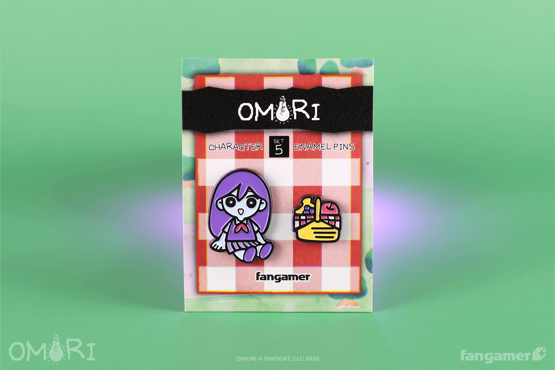This official OMORI soft-enamel pin set was designed for Fangamer Japan by Ade. The MARI pin is about 35 mm tall; her picnic basket is about 18 mm wide.